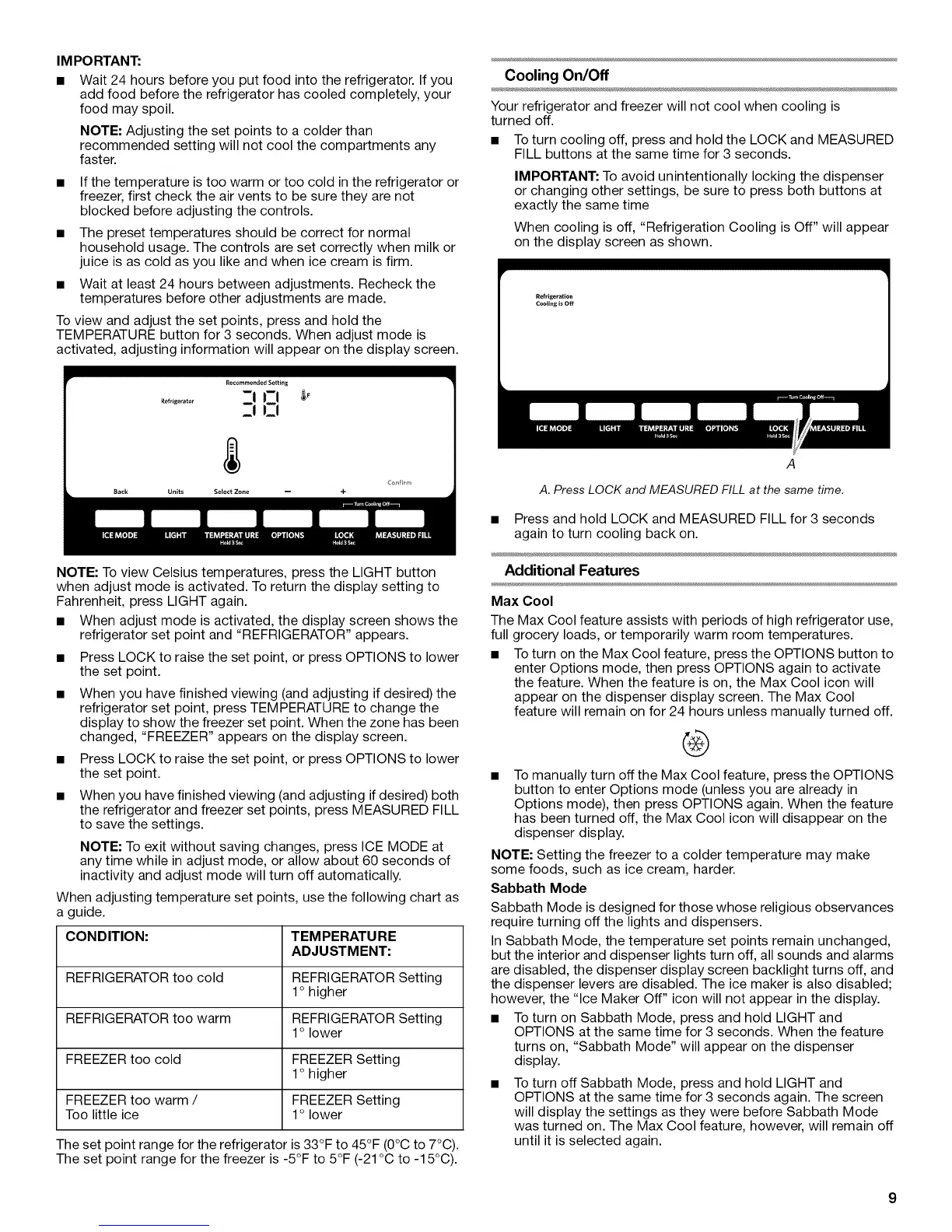 When cooling is off, "Refrigeration Cooling is Off" will appear