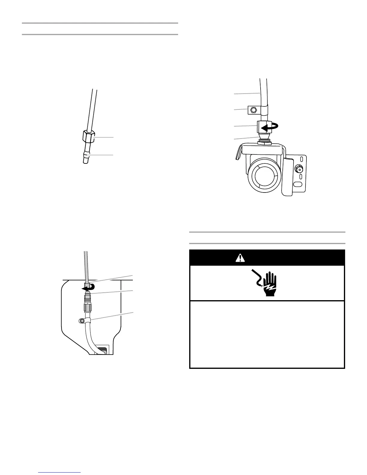 5. Fasten the plastic water line to the refrigerator with a “P”