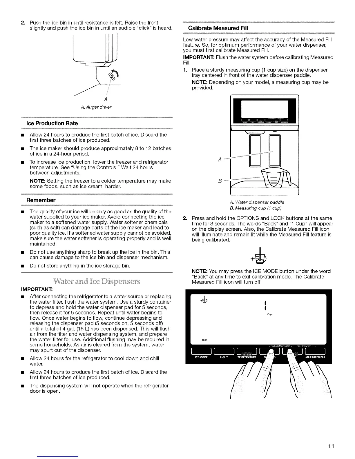 IMPORTANT: Flush the water system before calibrating Measured