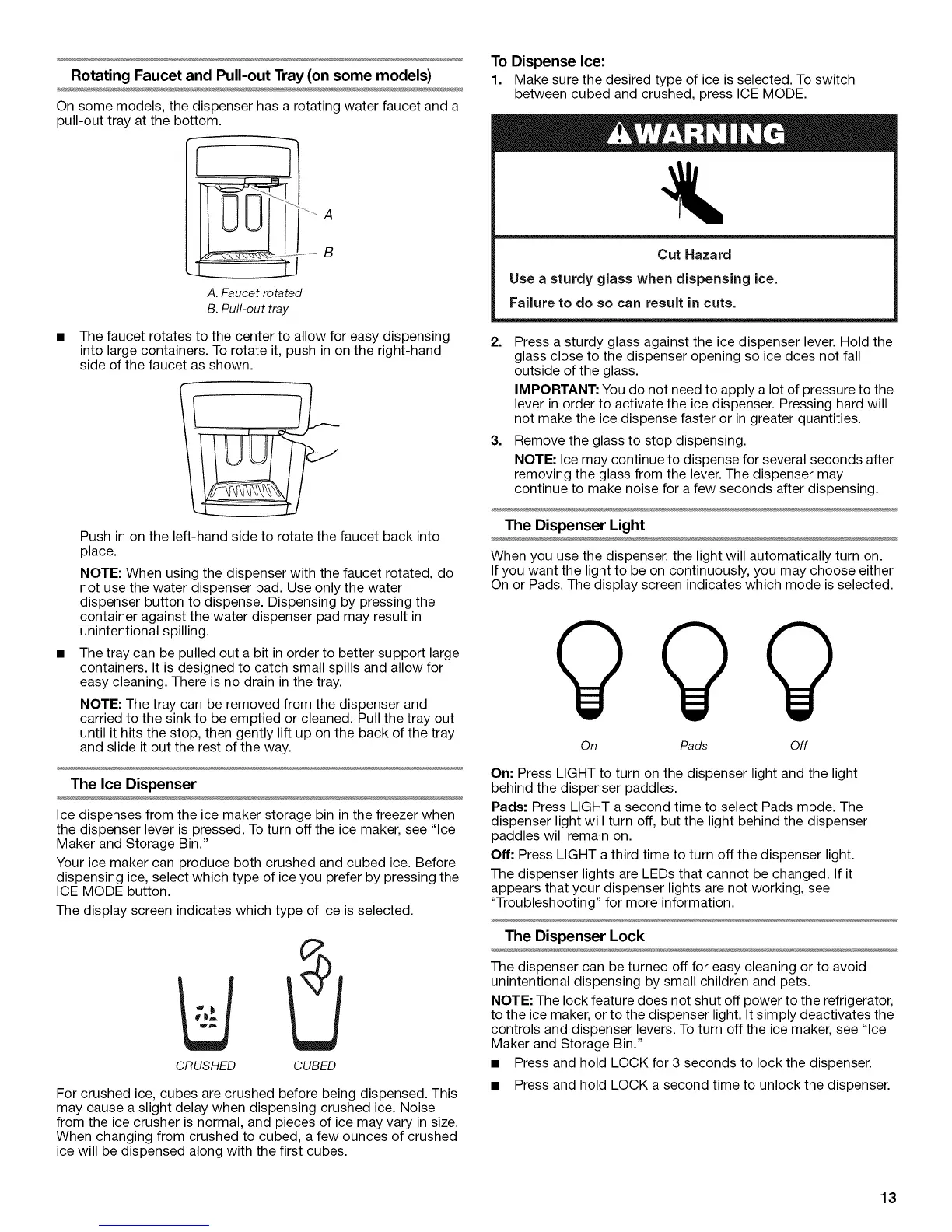 controls and dispenser levers. To turn off the ice maker, see "Ice