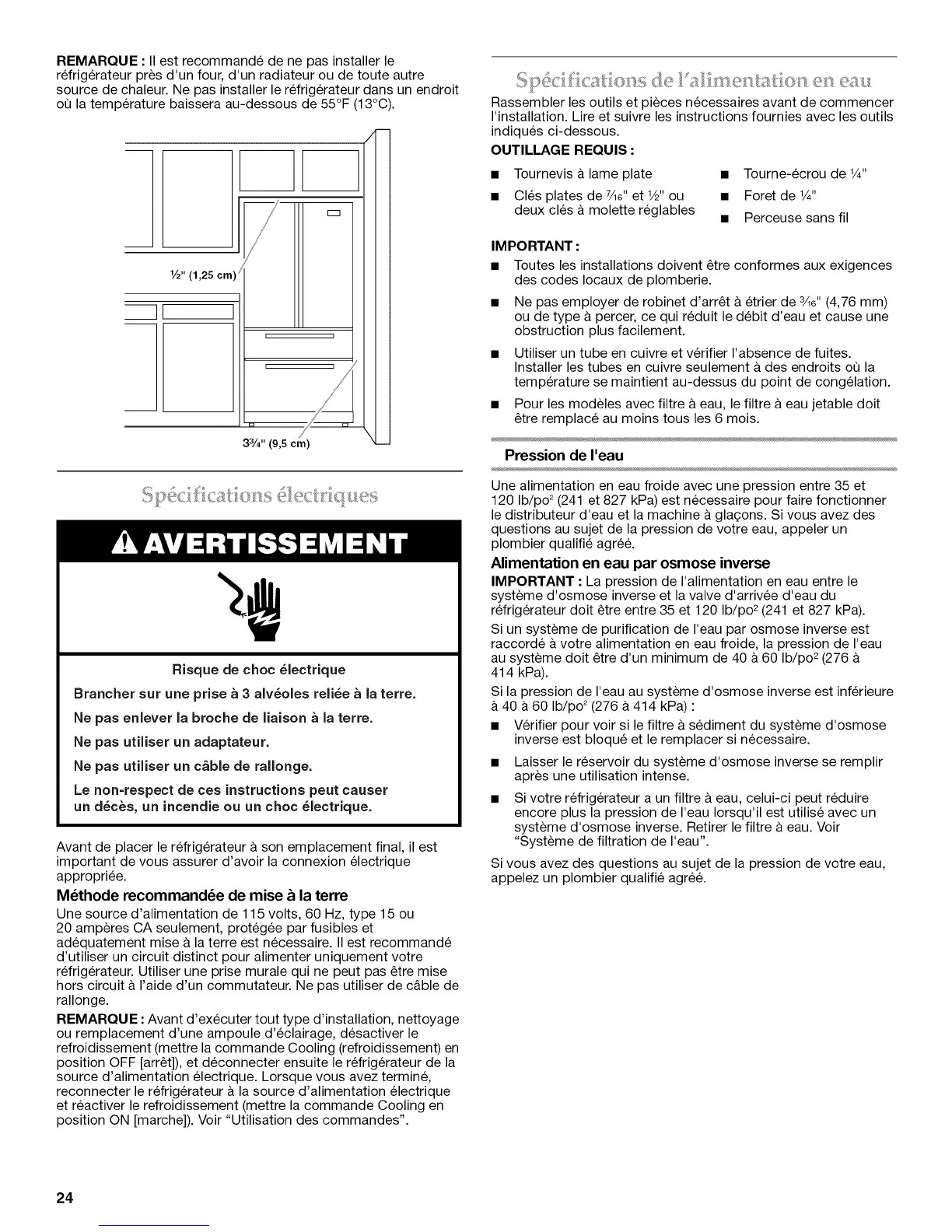 refrigerateur dolt _tre entre 35 et 120 Ib/po 2(241 et 827 kPa).