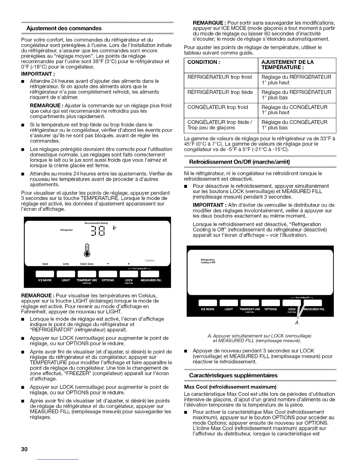 recommandes par I'usine sont 38°F (3°C) pour le refrig6rateur et