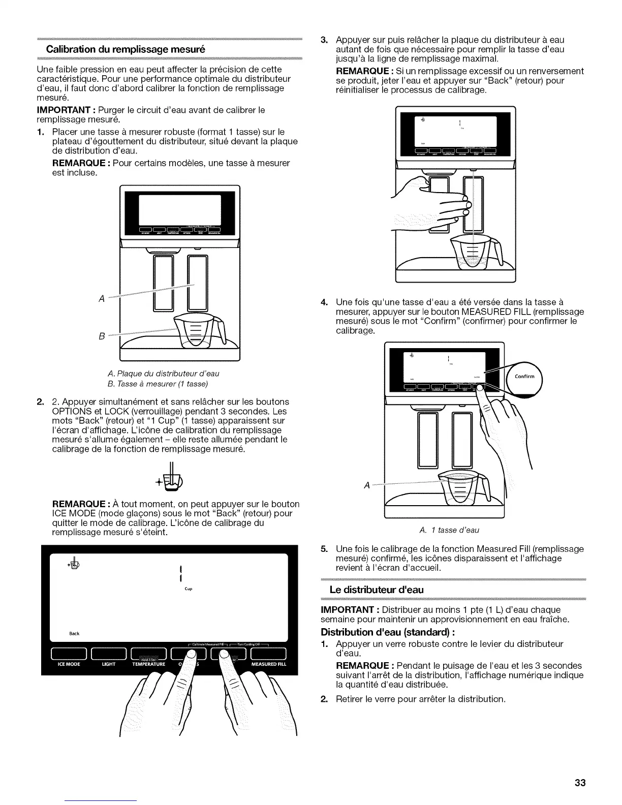 Appuyer sur puis rel&cher la plaque du distributeur a eau