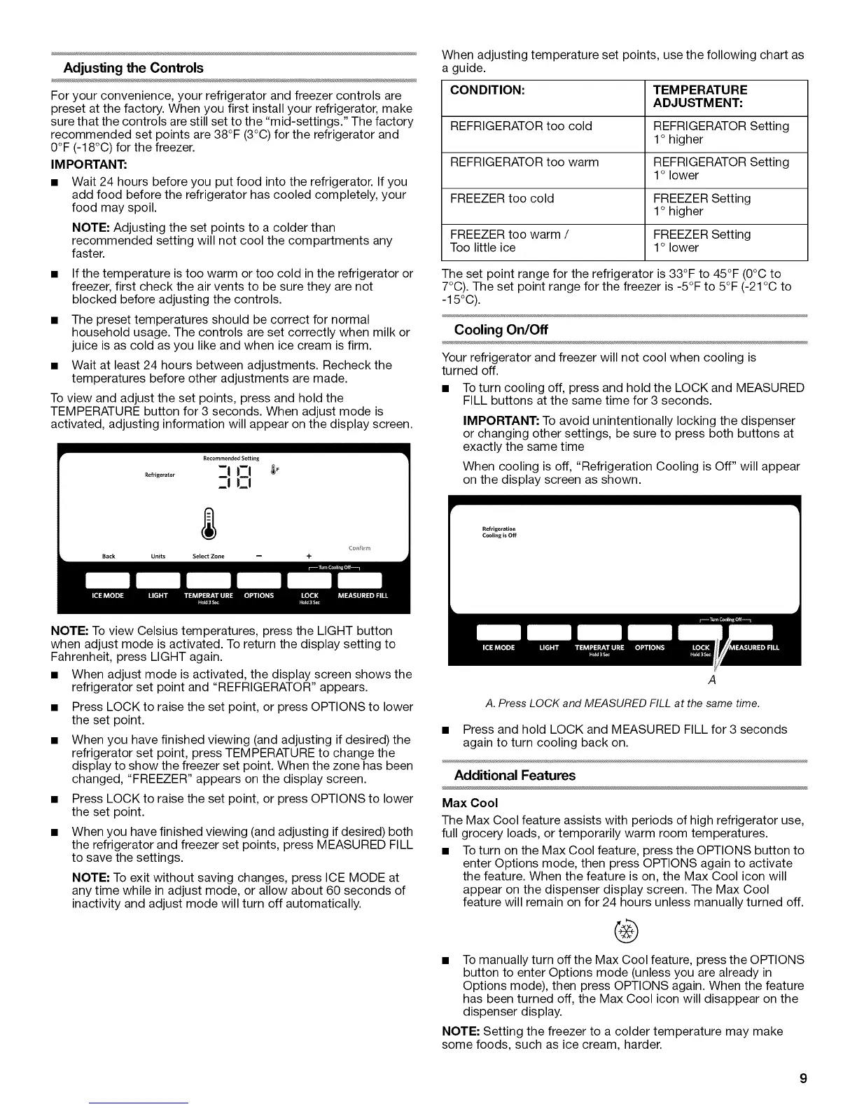 When cooling is off, "Refrigeration Cooling is Off" will appear