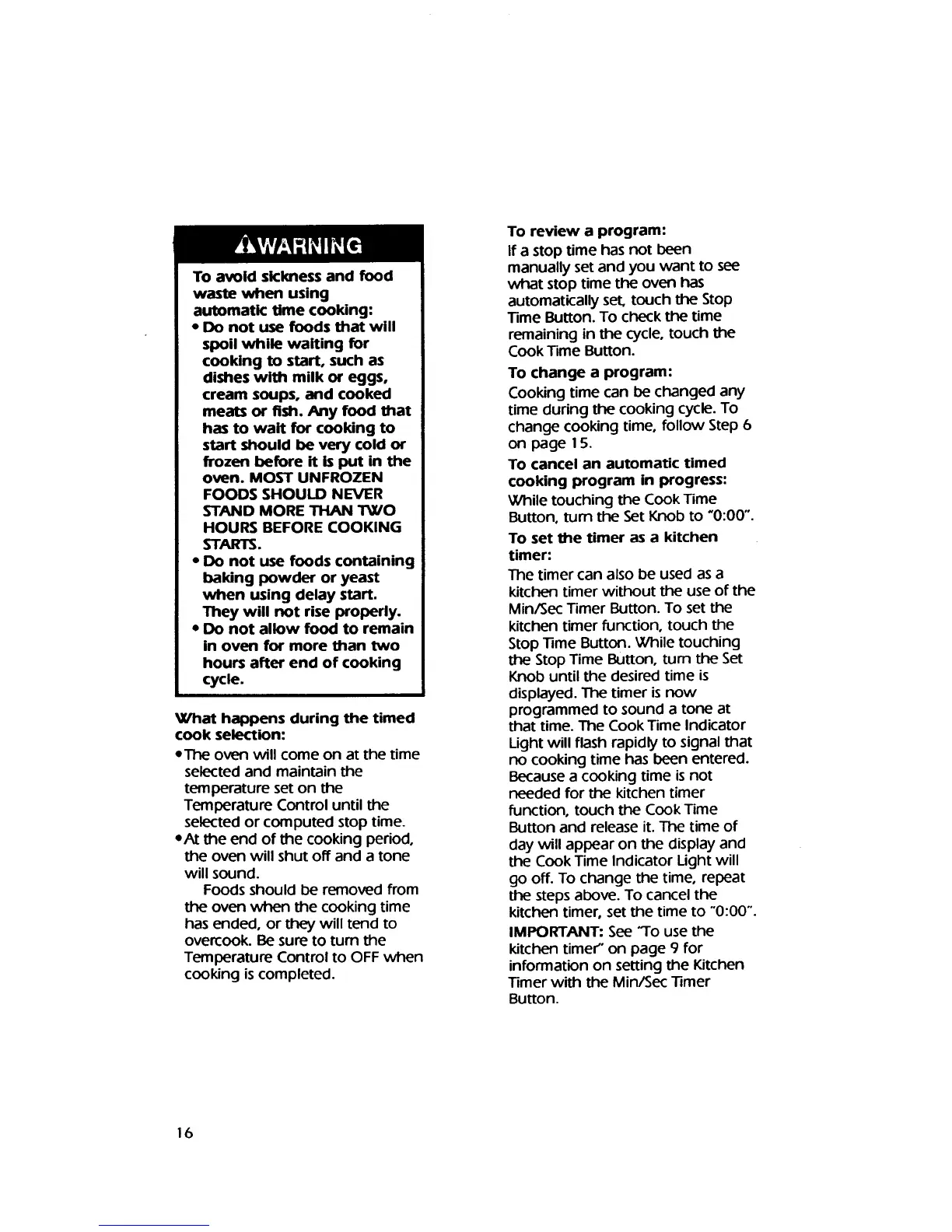 KitchenAid KGBS276X - Timed Cooking Safety and Management; Timed Cooking Safety Warnings; Timed Cooking Program Management