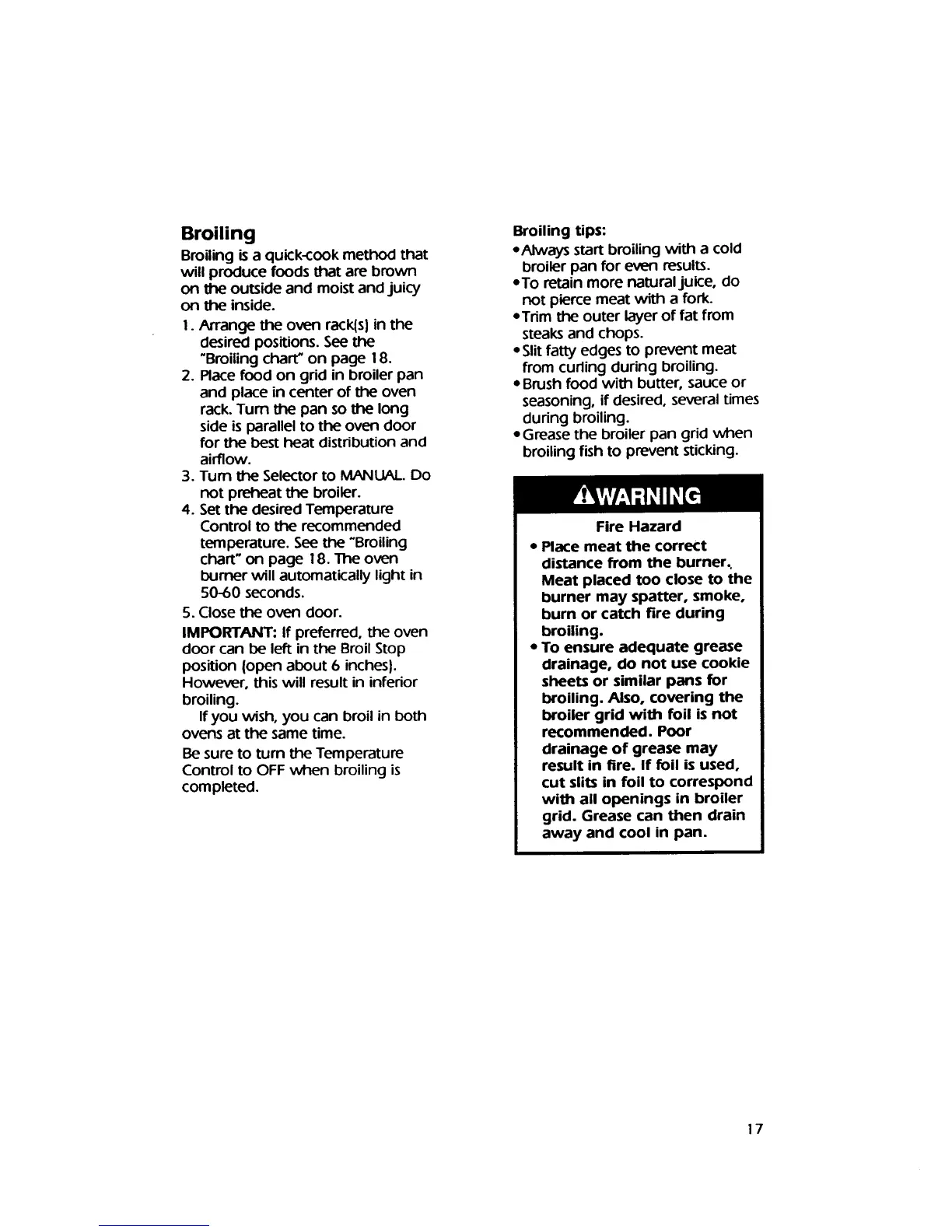KitchenAid KGBS276X - Broiling Guide; Broiling Method and Tips; Broiling Fire Hazard Warning
