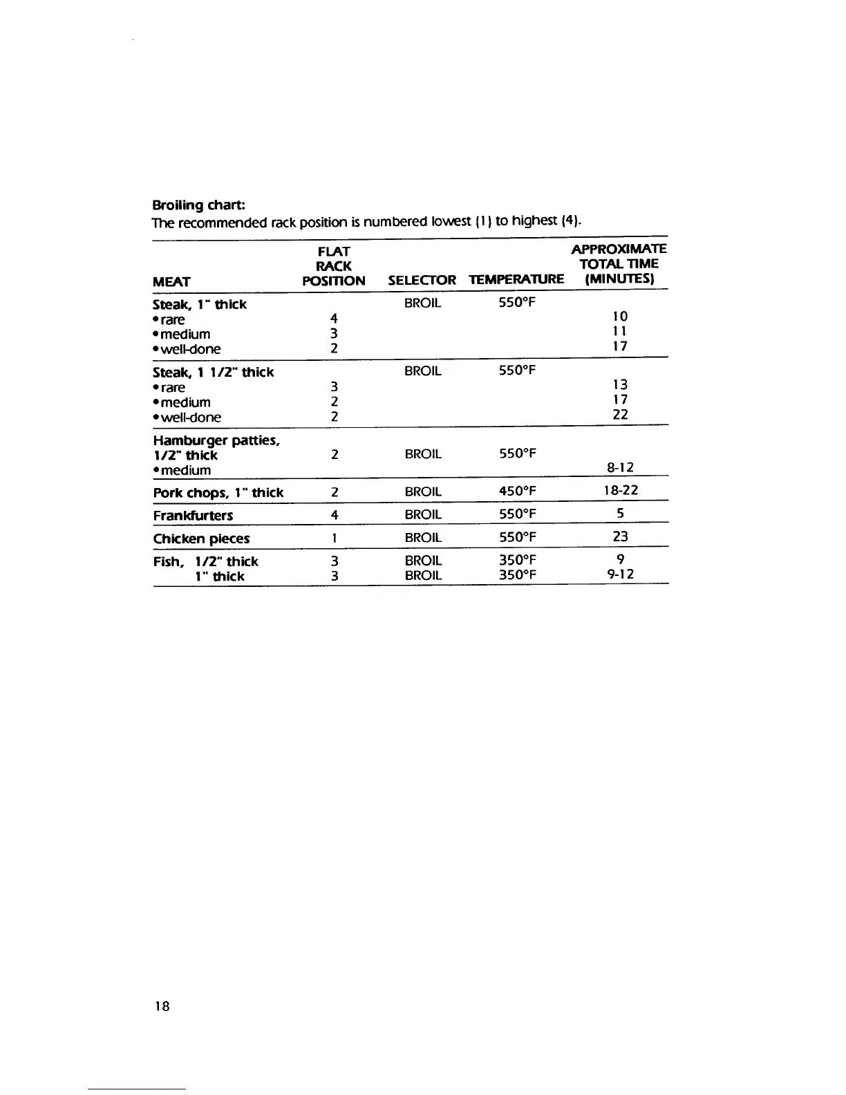 KitchenAid KGBS276X - Broiling Chart; Meat Broiling Temperatures and Times