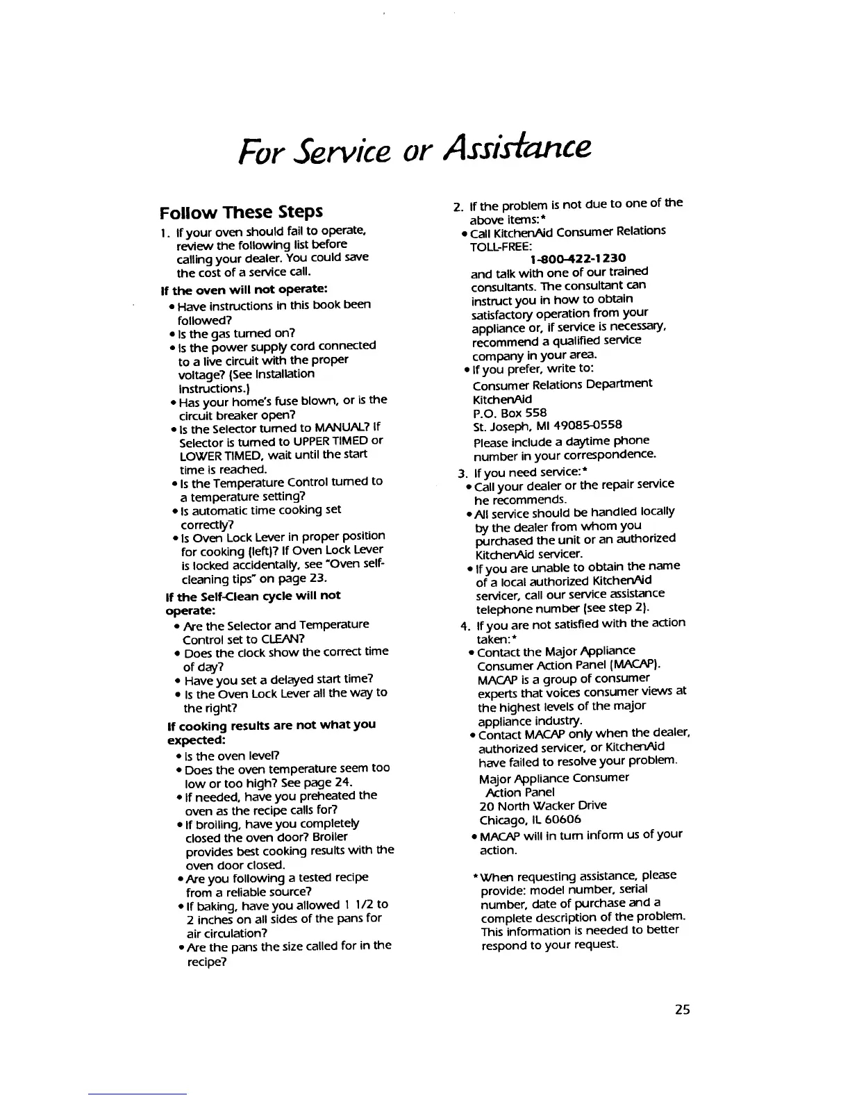 KitchenAid KGBS276X - For Service or Assistance; Troubleshooting Oven Issues; Contacting Support and MACAP