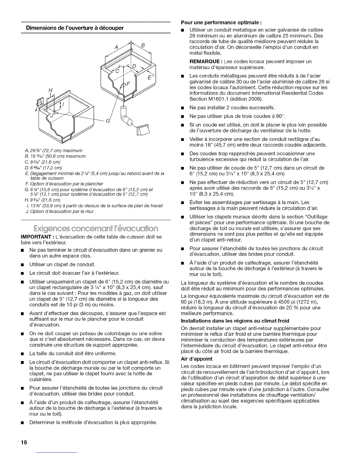 G. 6 _" (15,6 cm) pour systeme d'#vacuation de 6" (15,2 cm) et