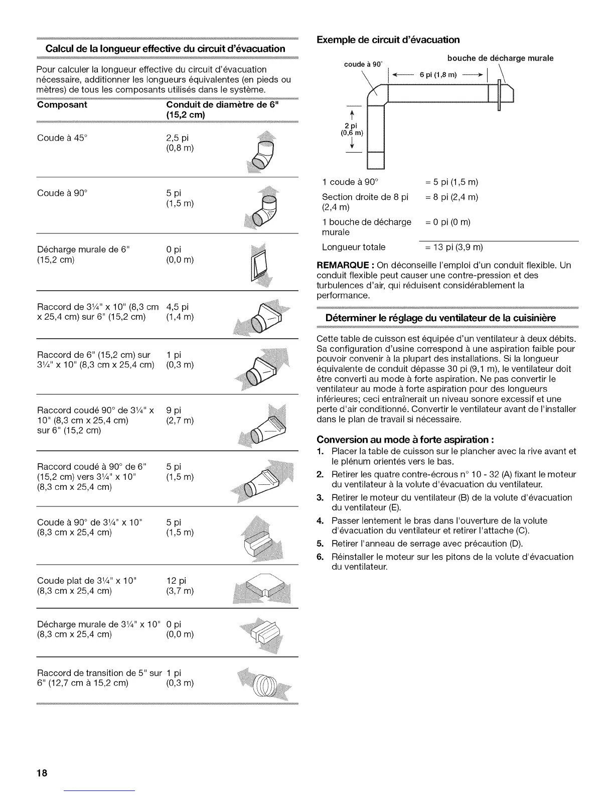 equivalente de conduit depasse 30 pi (9,1 m), le ventilateur doit