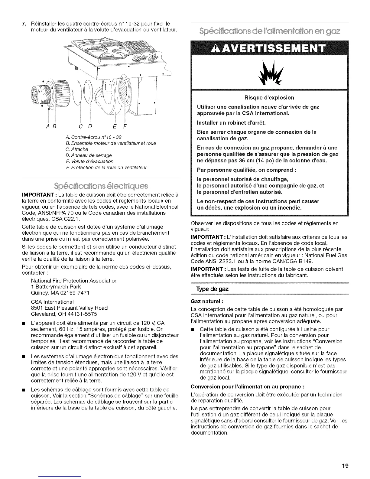 Code ANSI Z223.1 ou & la norme CAN/CGA B149.