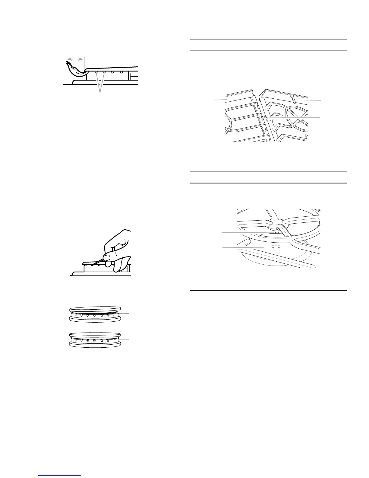 3. Clean clogged burner ports with a straight pin as shown. Do