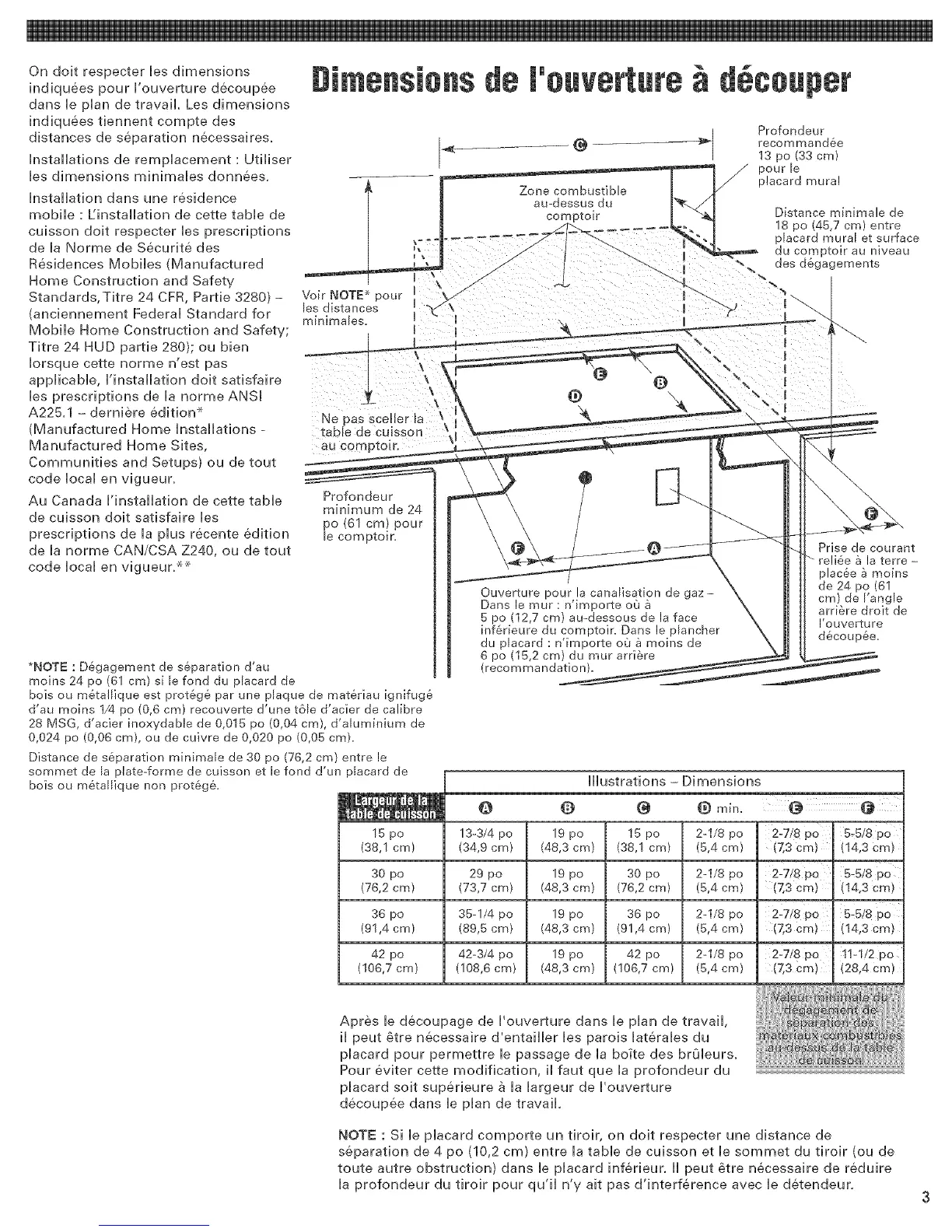 separation de 4 po (10,2 cm) entre la table de cuisson et le sommet du tiroir (ou de