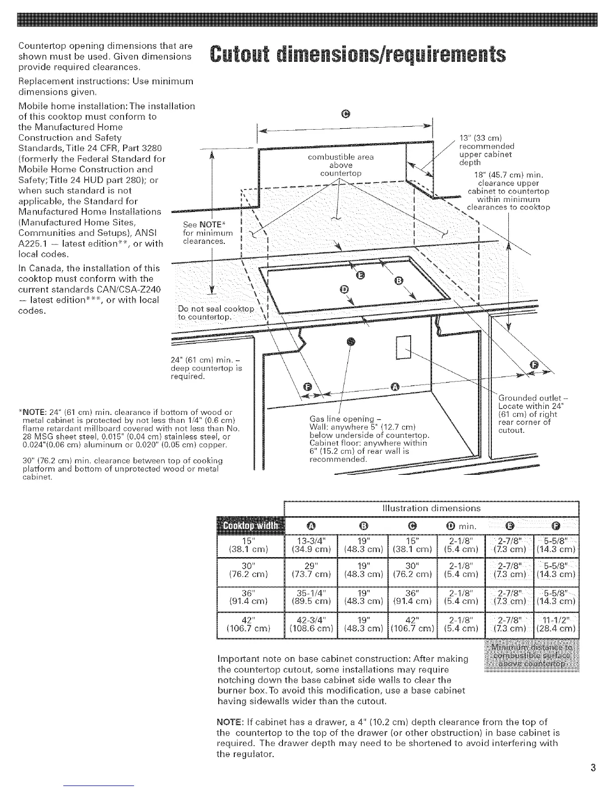30" (76.2 cm} rnin. clearance between top of cooldng