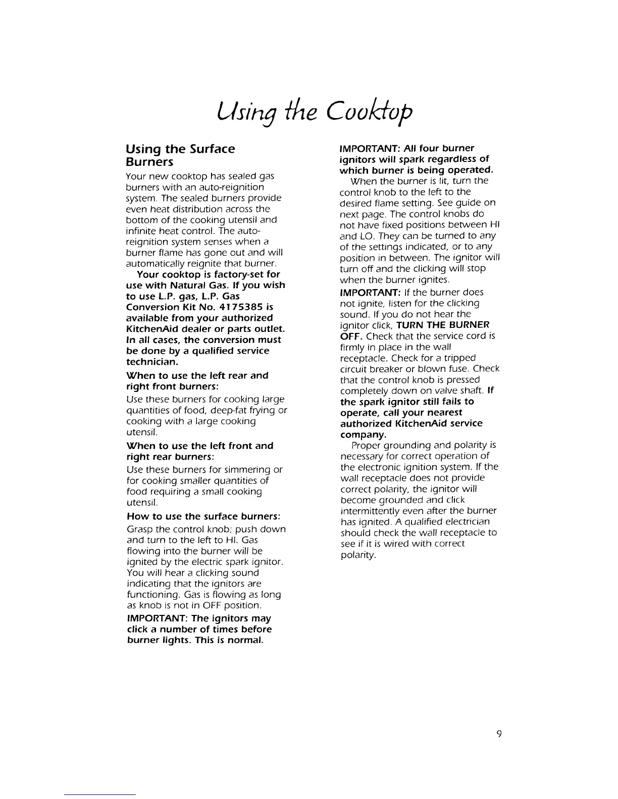 KitchenAid KGCT365X - Using the Cooktop; Using the Surface Burners