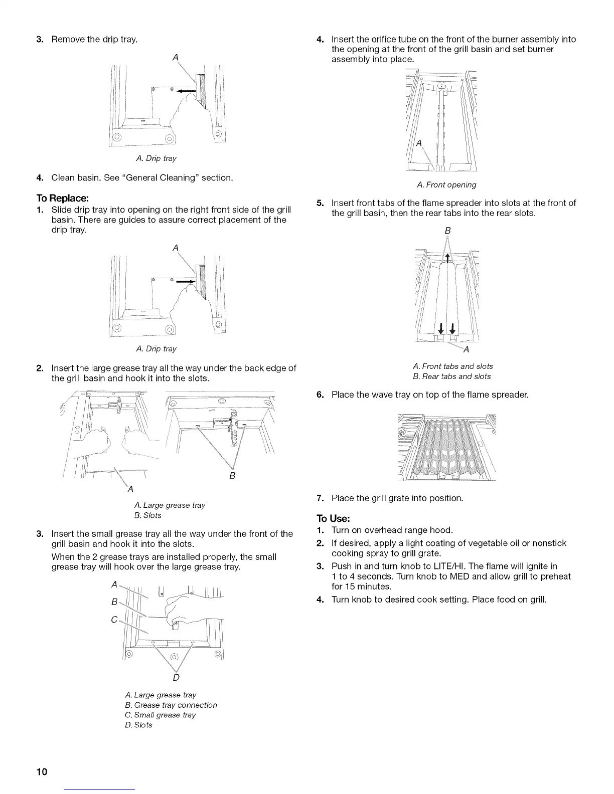 Insert the large grease tray all the way under the back edge of