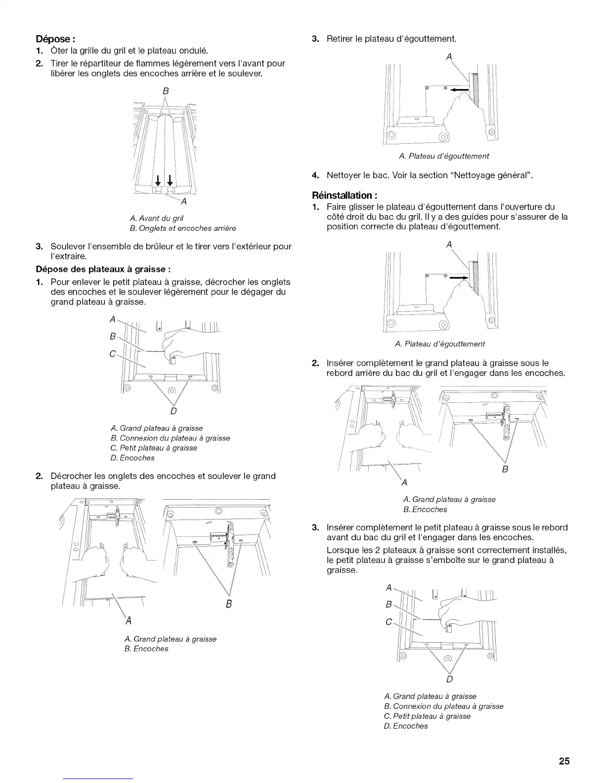 avant du bac du gril et I'engager dans les encoches.