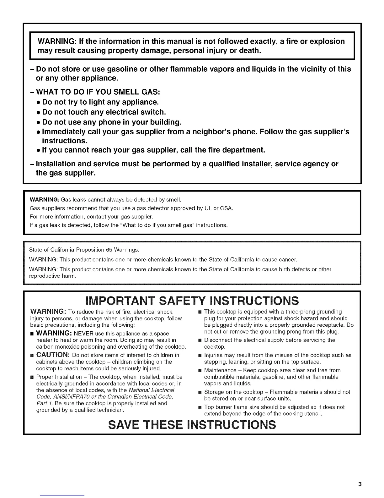 WARNING: To reduce the risk of fire, electrical shock, [] This cooktop is equipped with a three-prong grounding