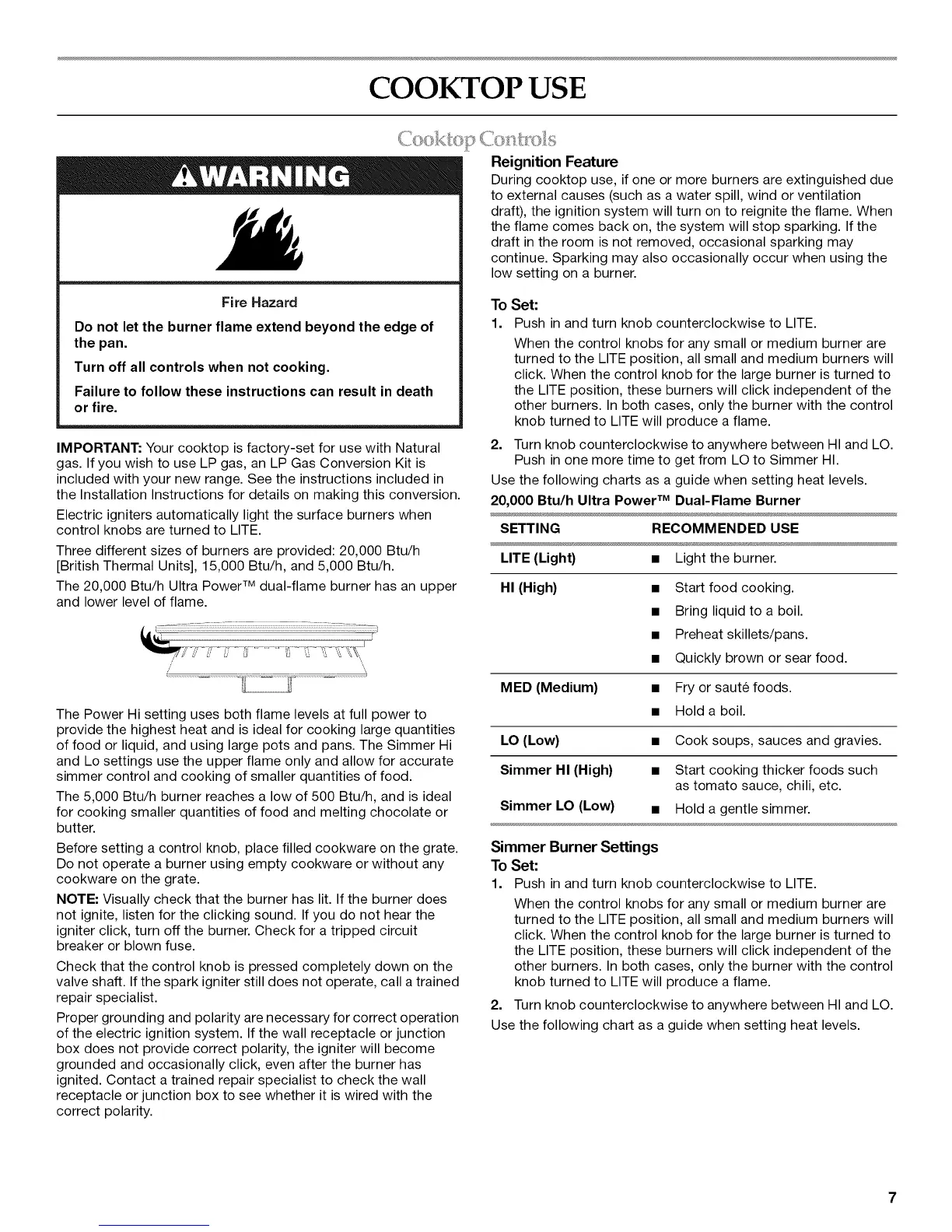 IMPORTANT: Your cooktop is factory-set for use with Natural