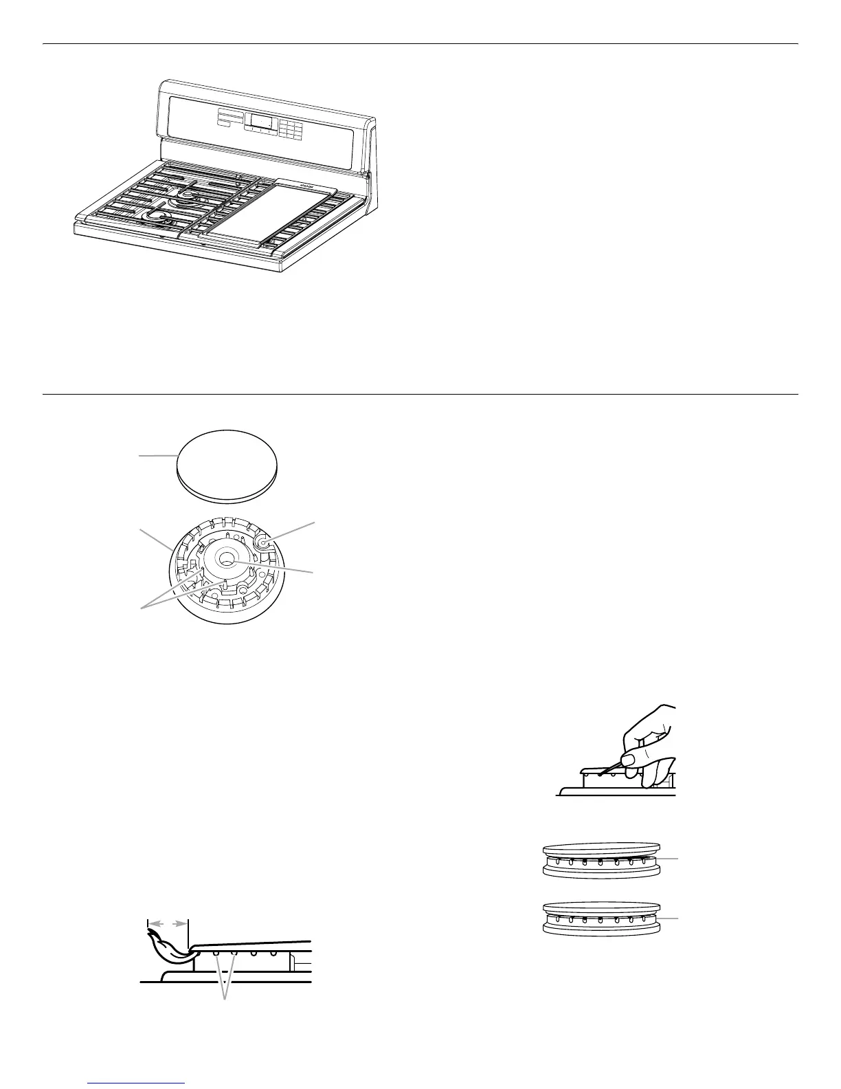 4. Réinstaller le chapeau de brûleur et s’assurer que les tiges