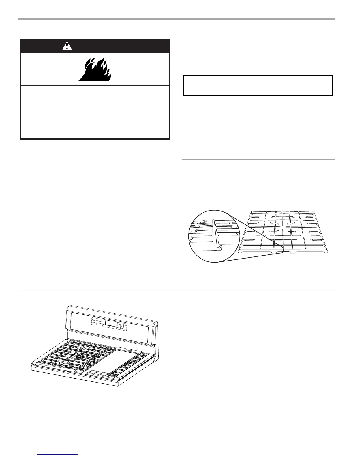 either the left or right side of the cooktop. Grates that are designed