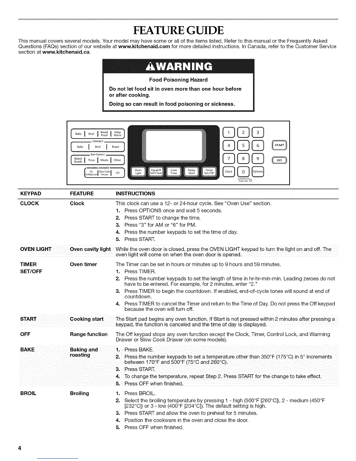 OFF Range function The Off keypad stops any oven function except the Clock, Timer, Control Lock, and Warming