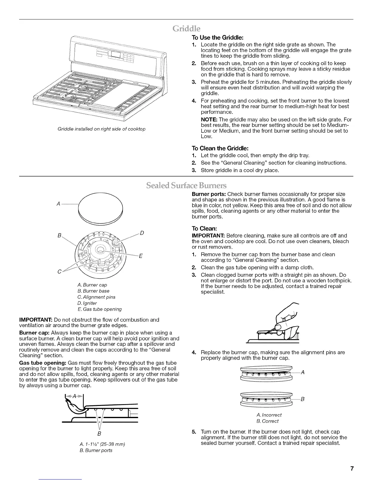 5. Turn on the burner. Ifthe burner does not light, check cap