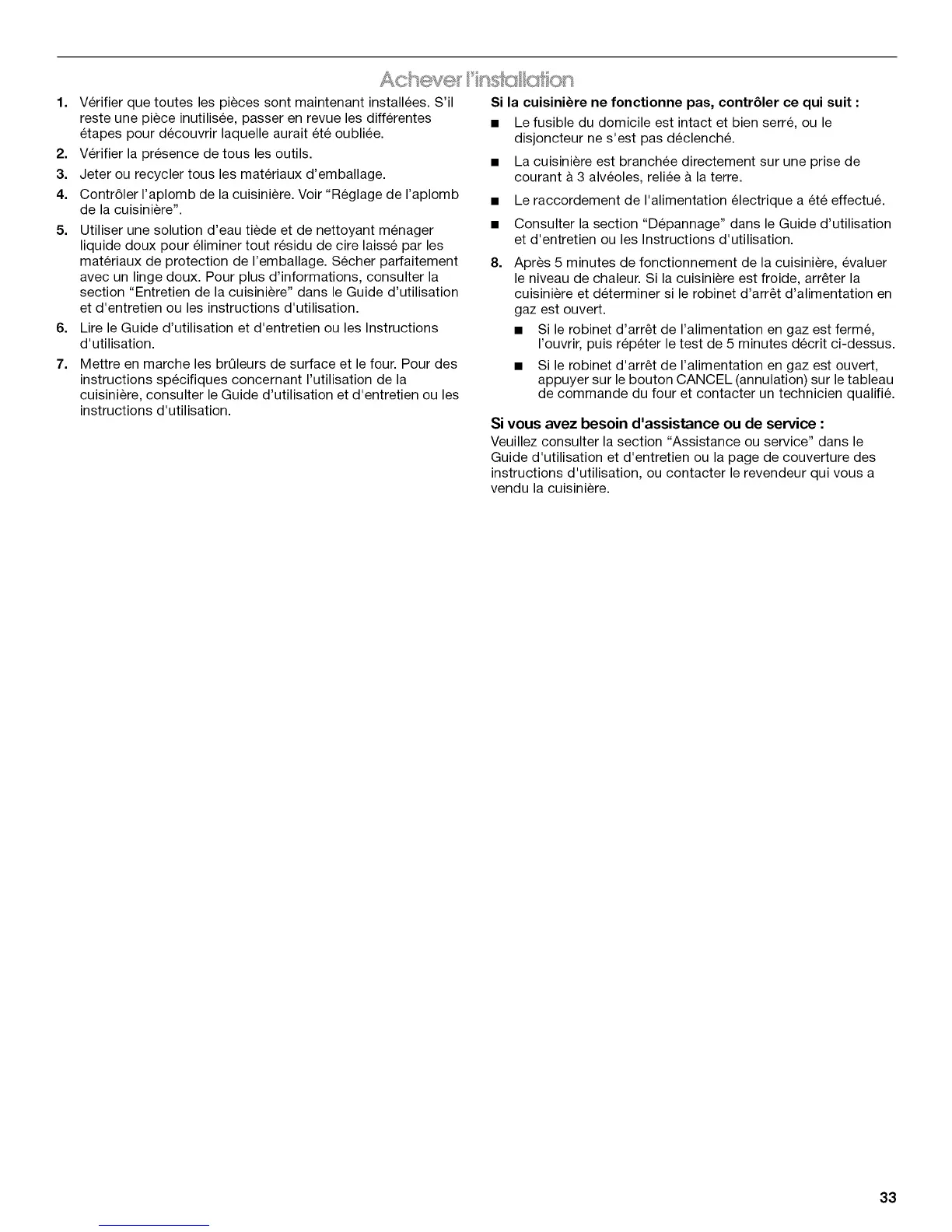 4. Contr61er I'aplomb de la cuisiniere. Voir "Reglage de I'aplomb