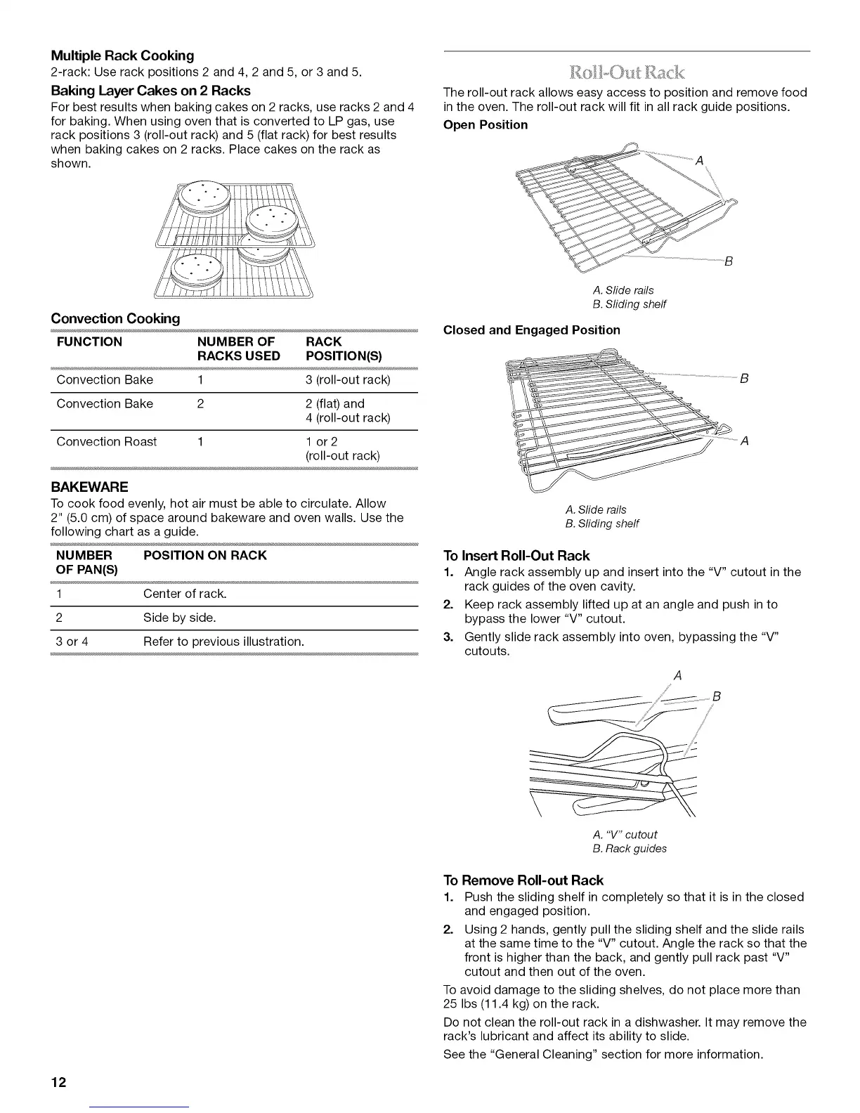in the oven. The roll-out rack will fit in all rack guide positions.