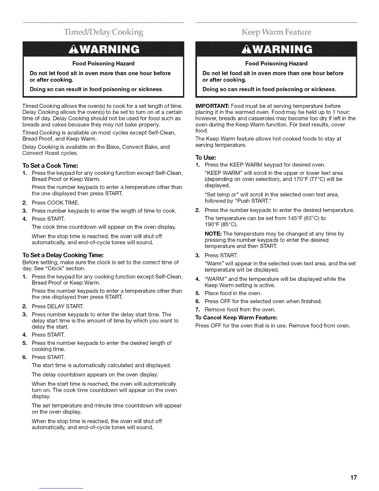 oven during the Keep Warm function. For best results, cover