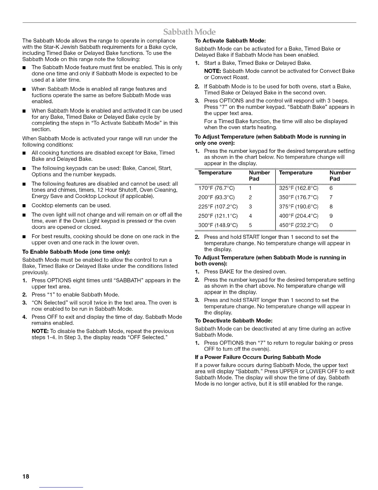 The Sabbath Mode allows the range to operate in compliance