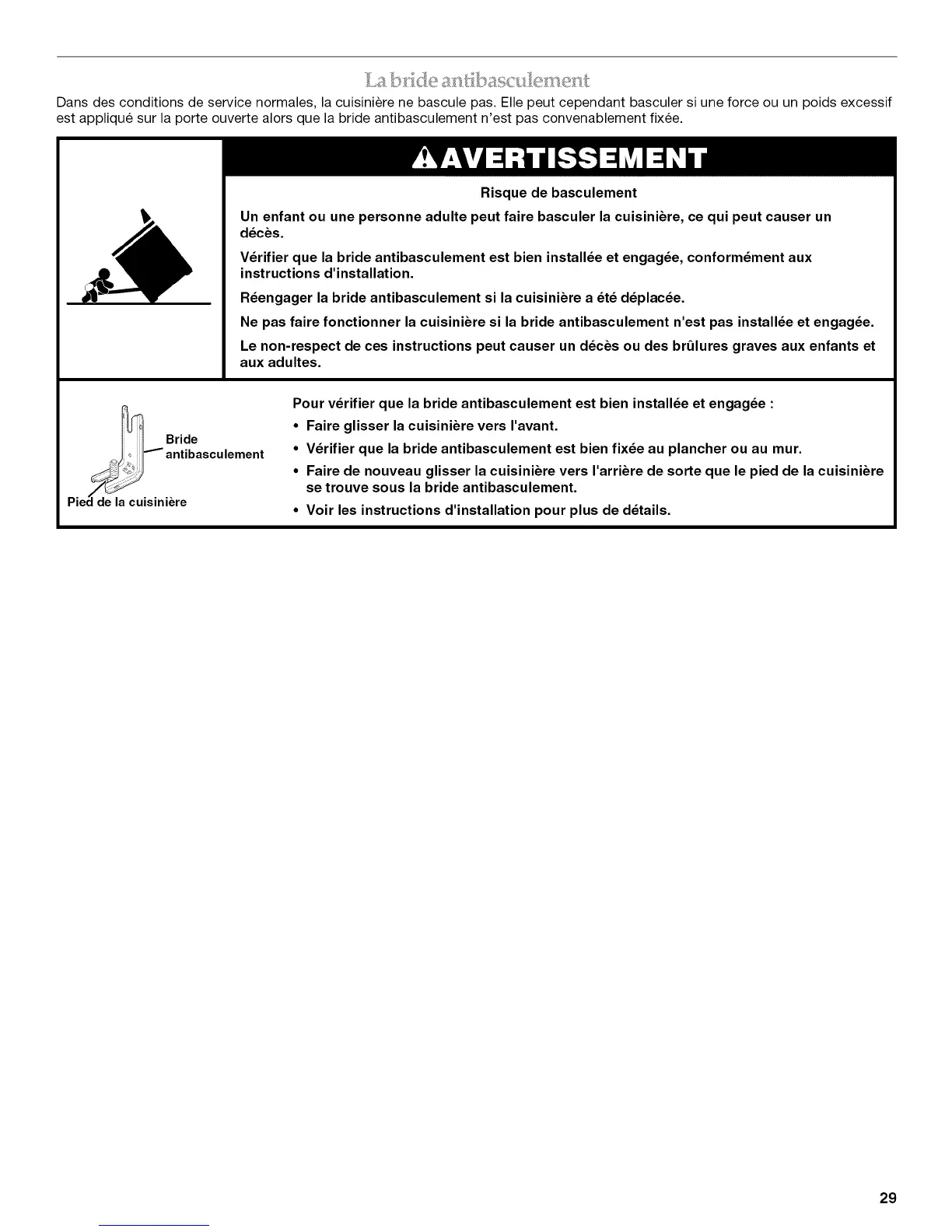 Ne pas faire fonctionner la cuisinibre si la bride antibasculement n'est pas install_e et engag_e.