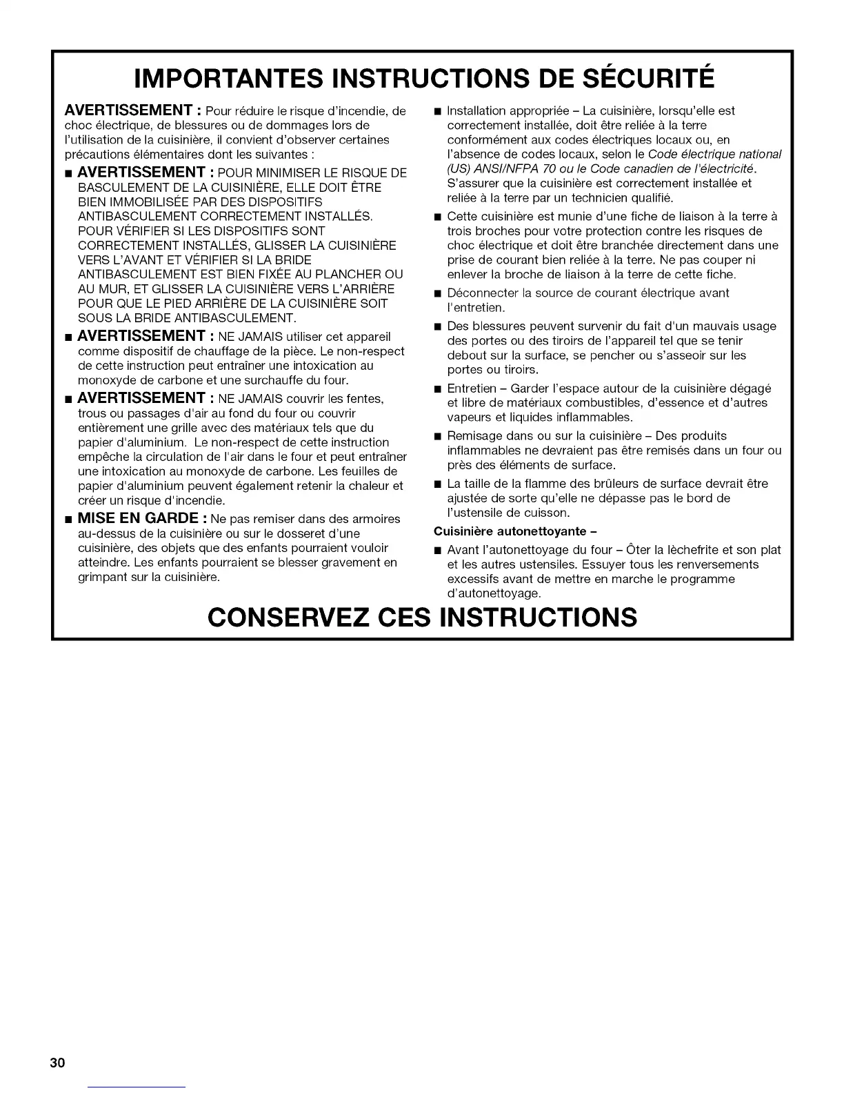 CONSERVEZ CES INSTRUCTIONS