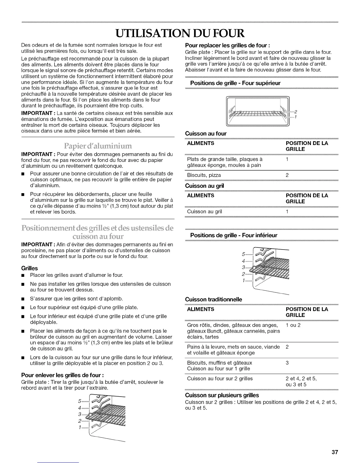 Positions de grille - Four sup6rieur