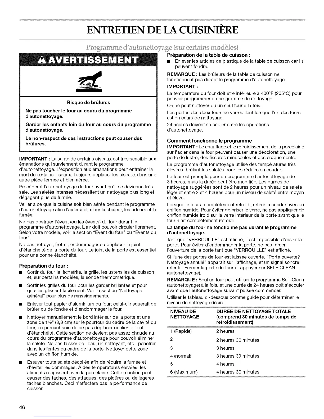 d'autonettoyage. L'exposition aux emanations peut entrainer la