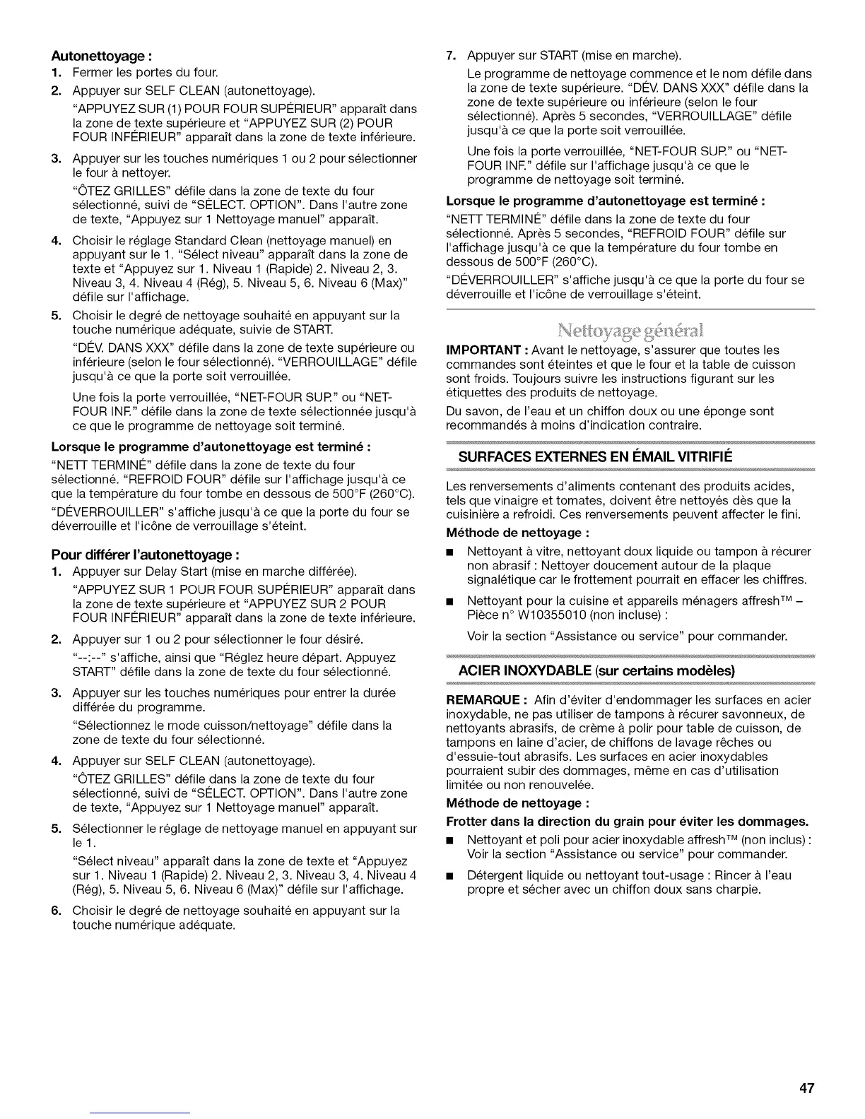Autonettoyage :
