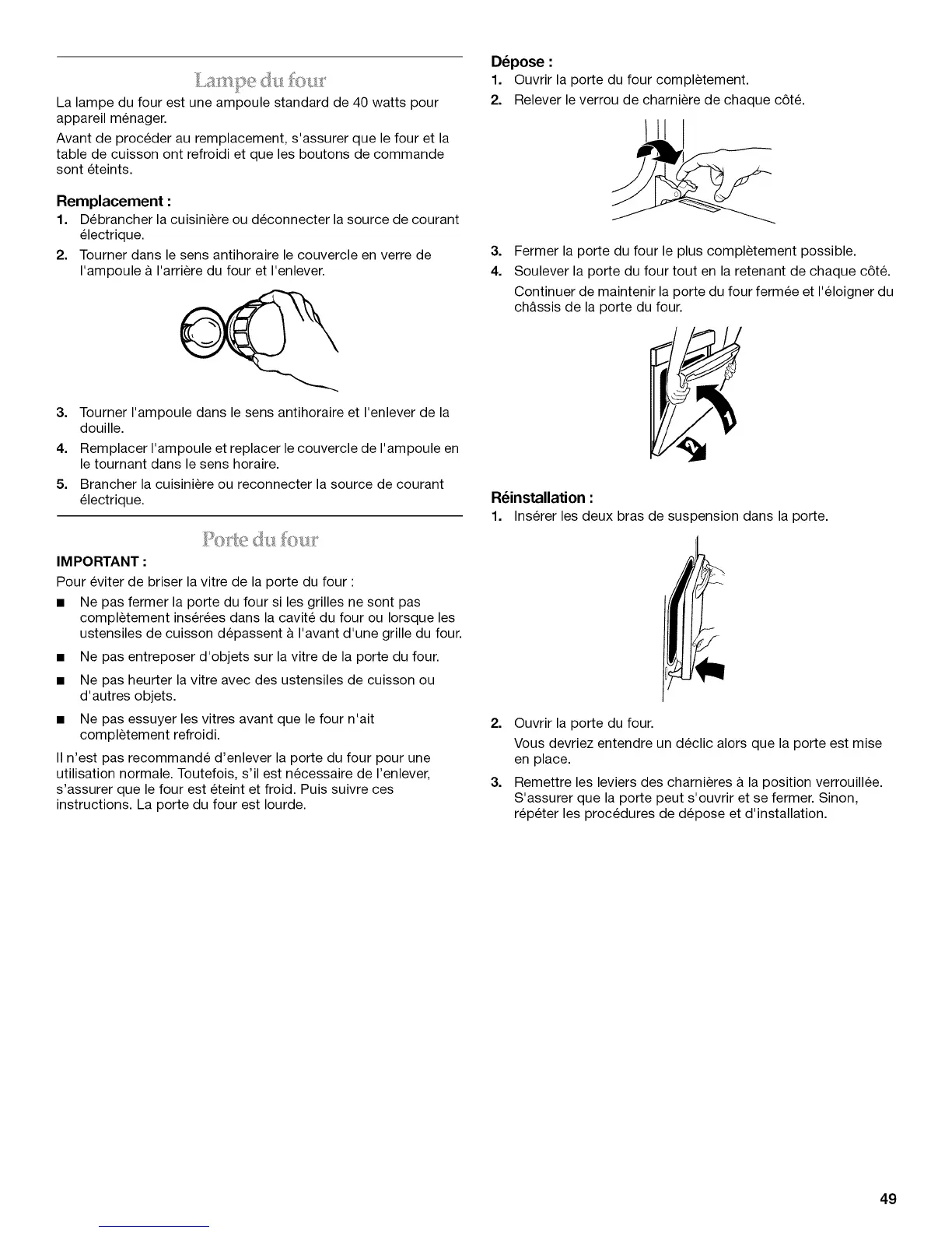 Soulever la porte du four tout en la retenant de chaque c6te.