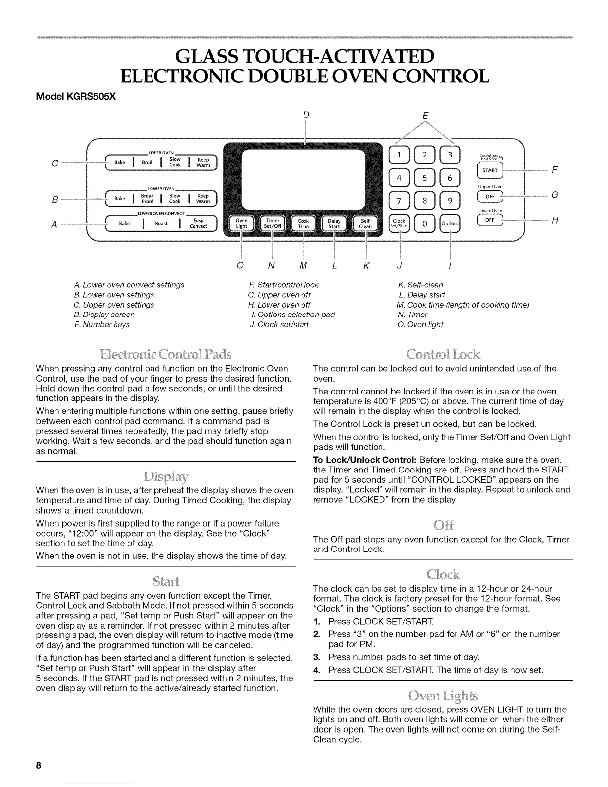 To Lock/Unlock Control: Before locking, make sure the oven,