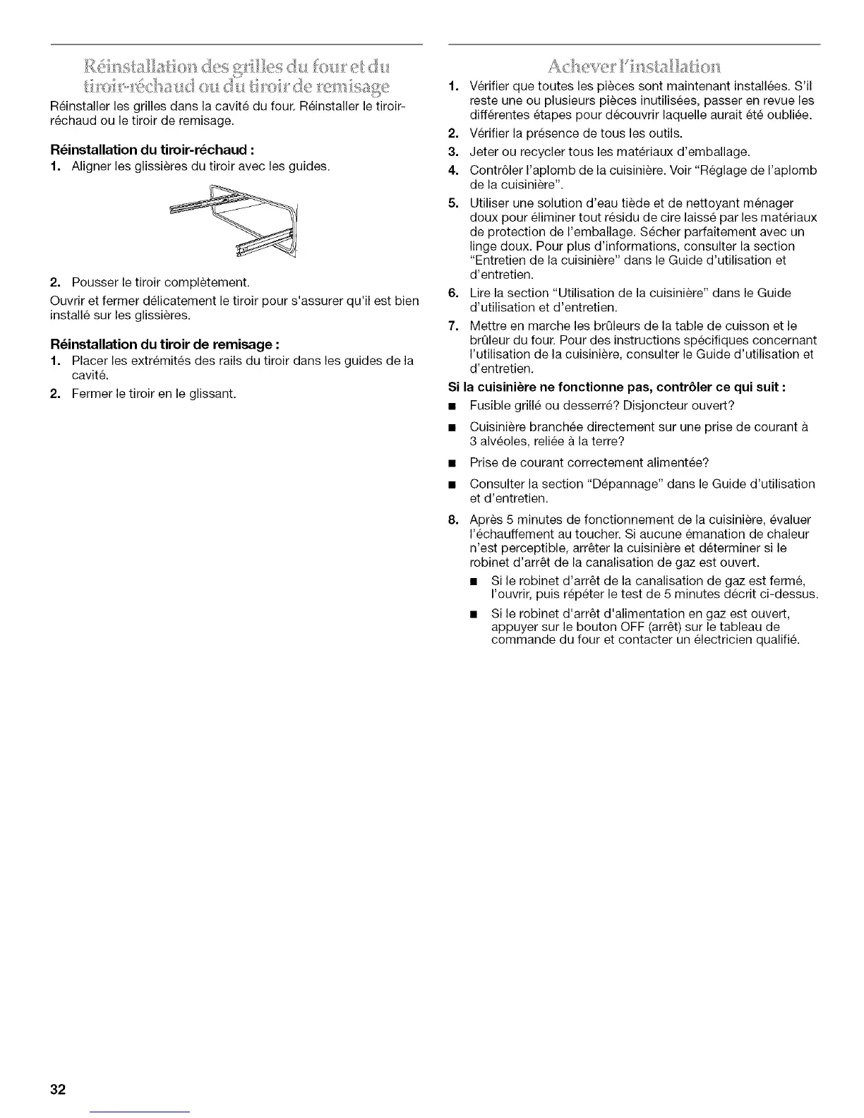 Reinstaller les grilles dans la cavite du four. Reinstaller le tiroir-