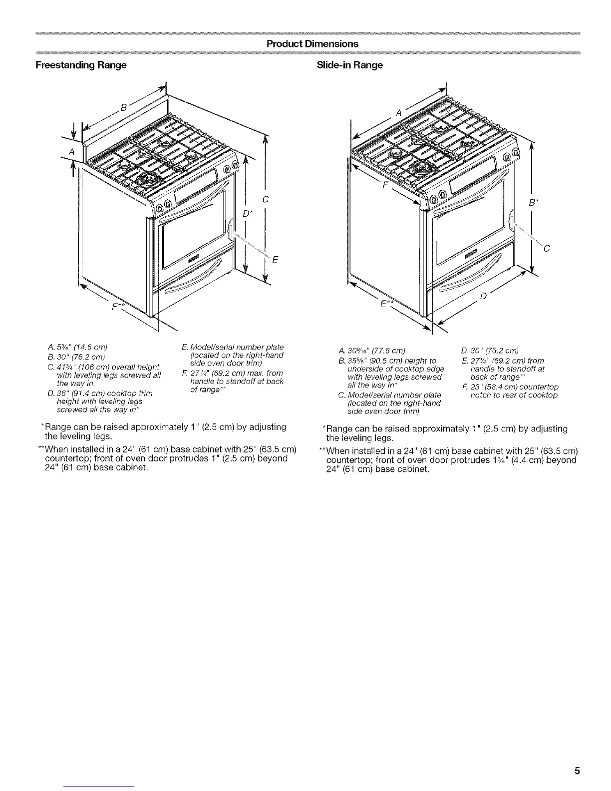 *Range can be raised approximately 1" (2.5 cm) by adjusting