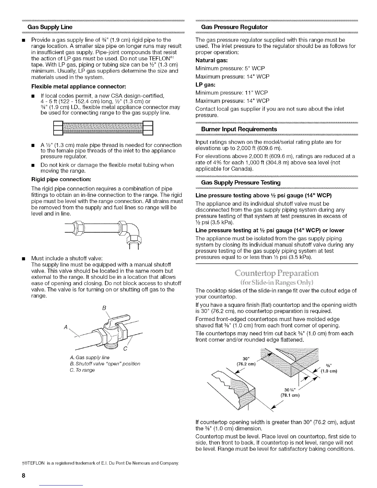 Provide a gas supply line of 3A" (1.9 cm) rigid pipe to the