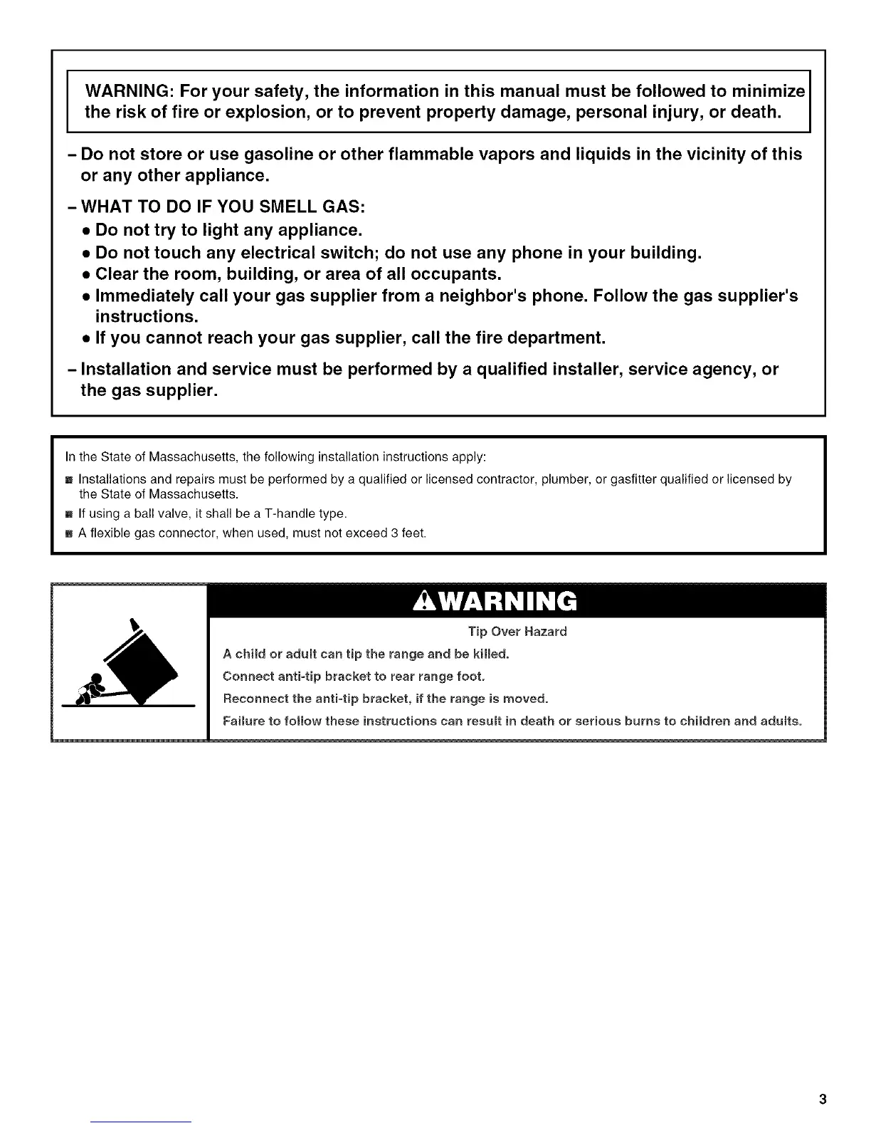 Faimure to follow these instructions can result in death or serious burns to children and adults.