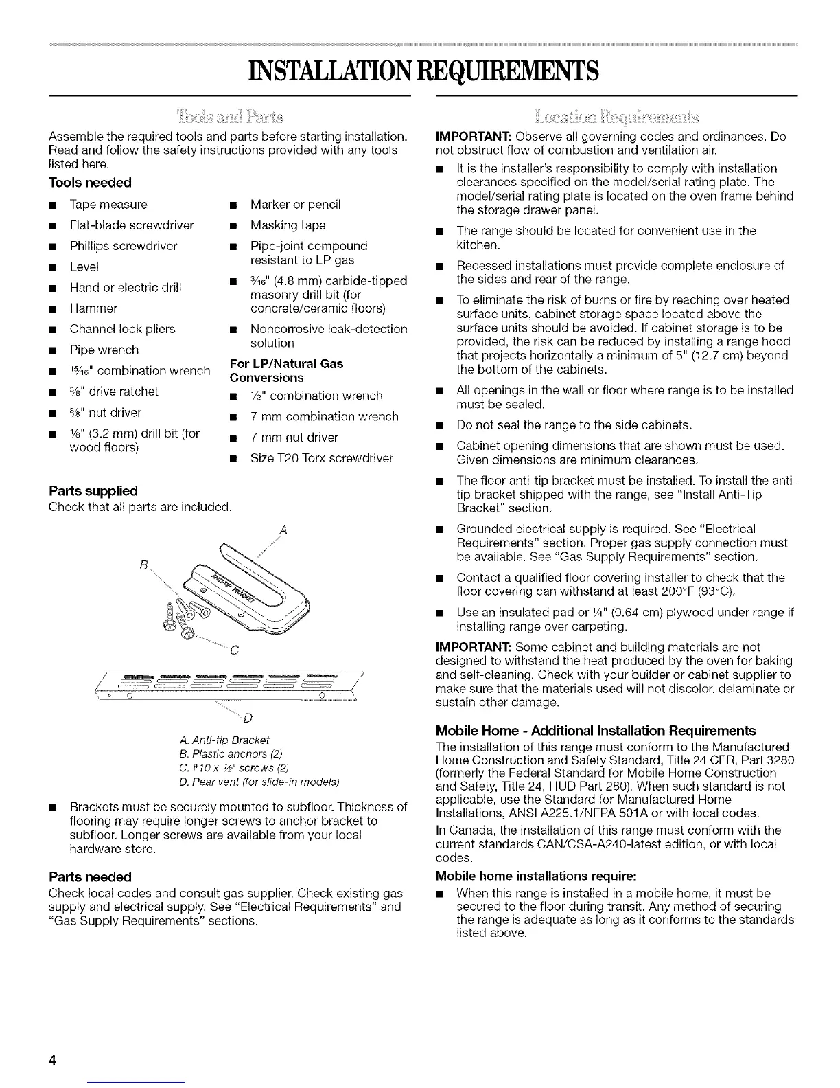 • The floor anti-tip bracket must be installed. To install the anti-