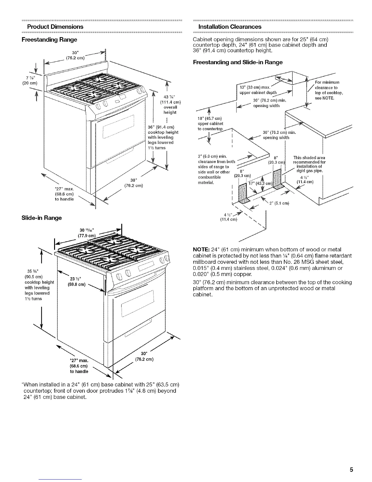 NOTE: 24" (61 cm) minimum when bottom of wood or metal