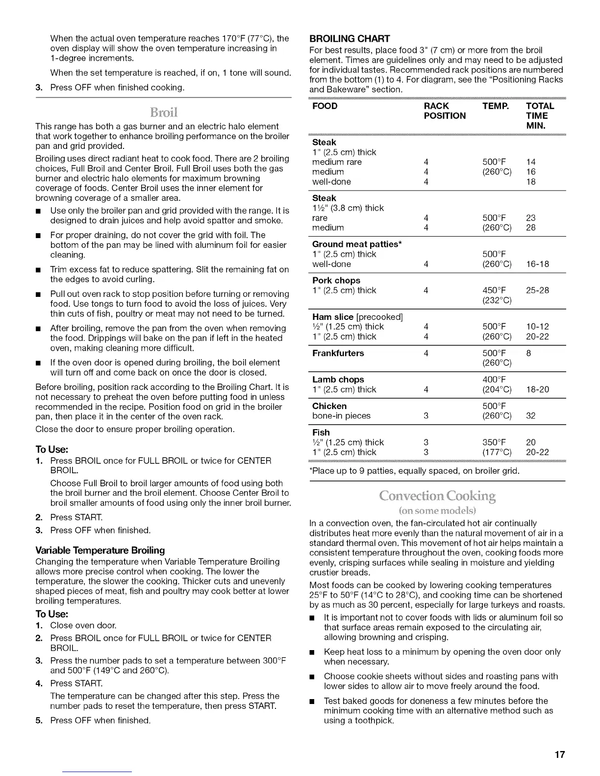 Before broiling, position rack according to the Broiling Chart. It is
