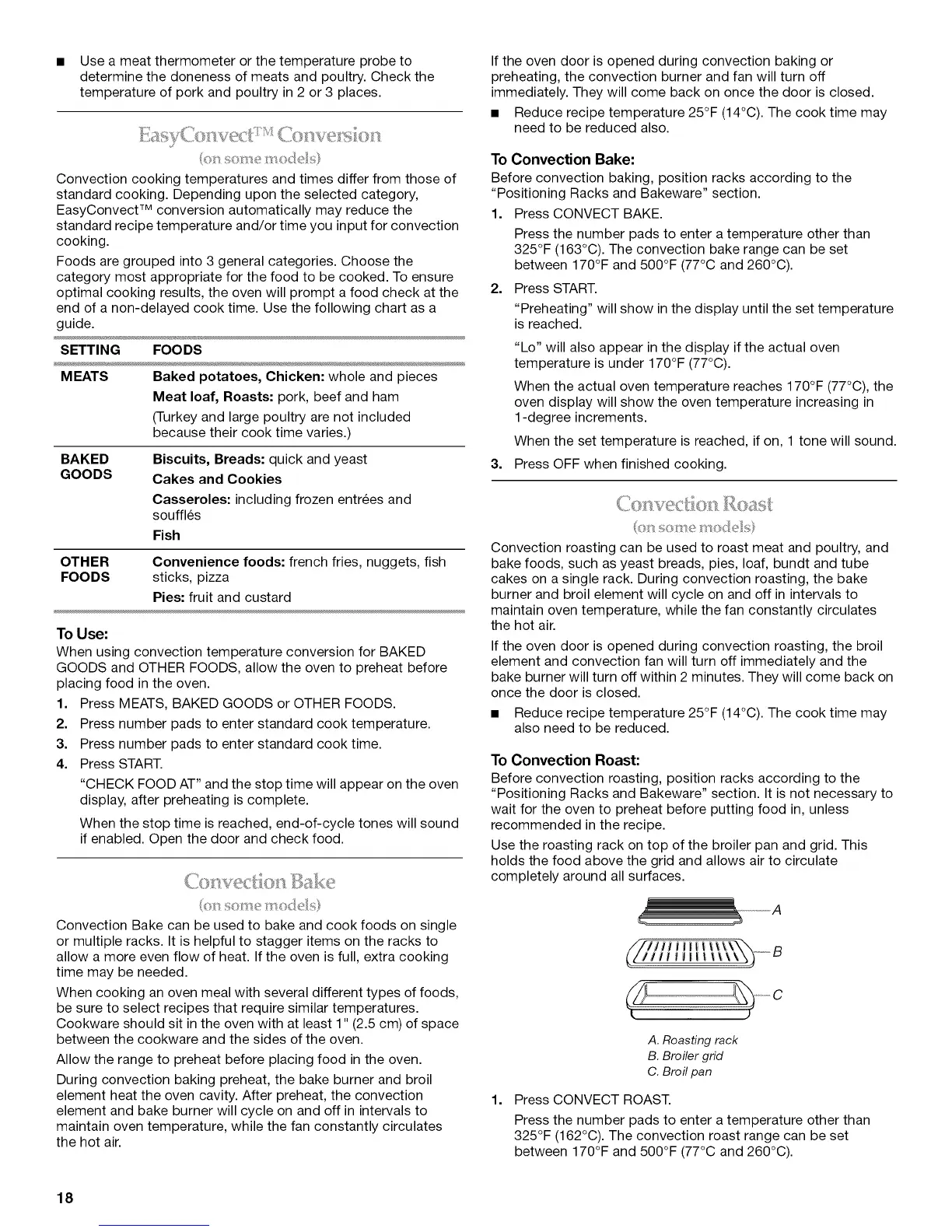 Convection cooking temperatures and times differ from those of