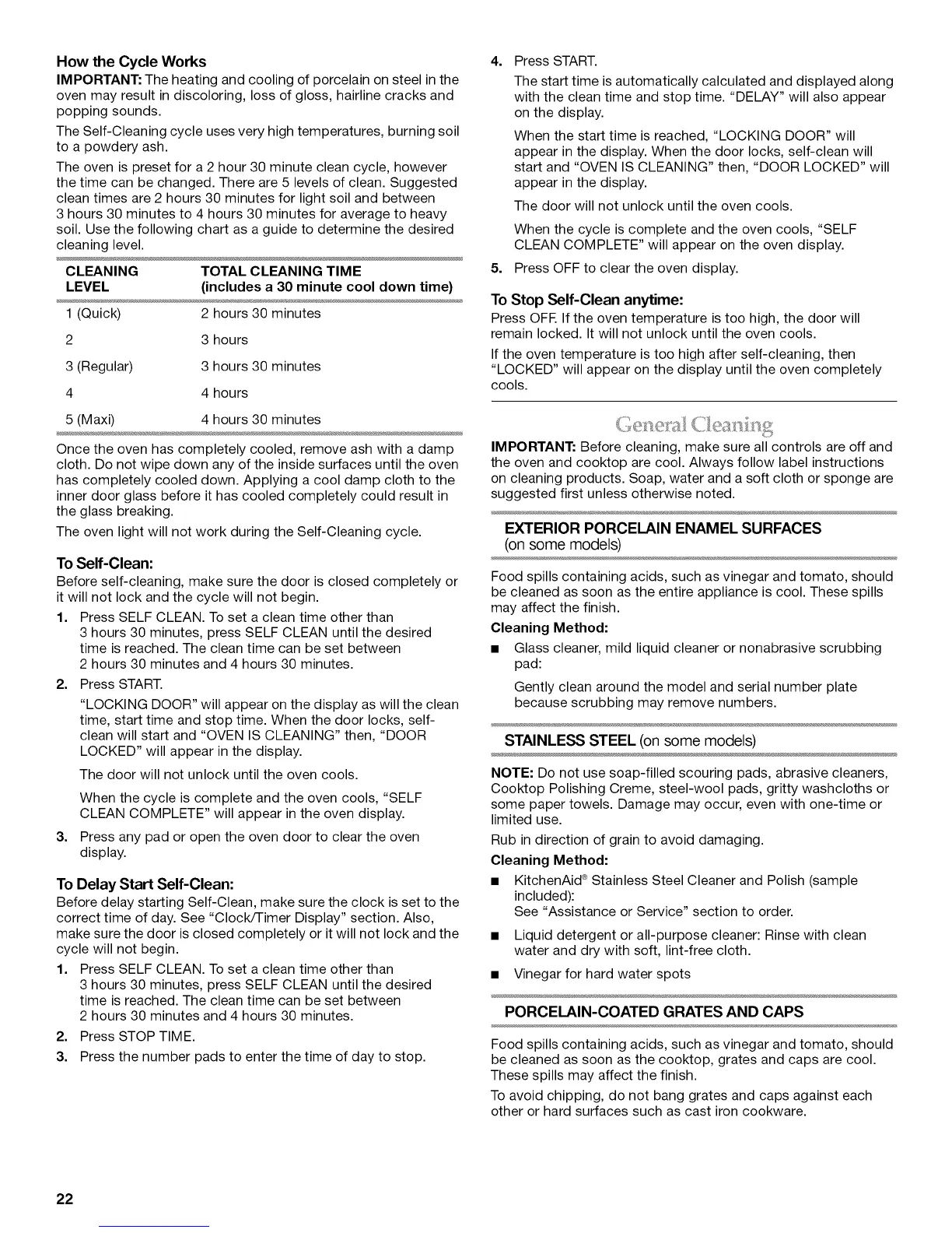 3 hours 30 minutes, press SELF CLEAN until the desired