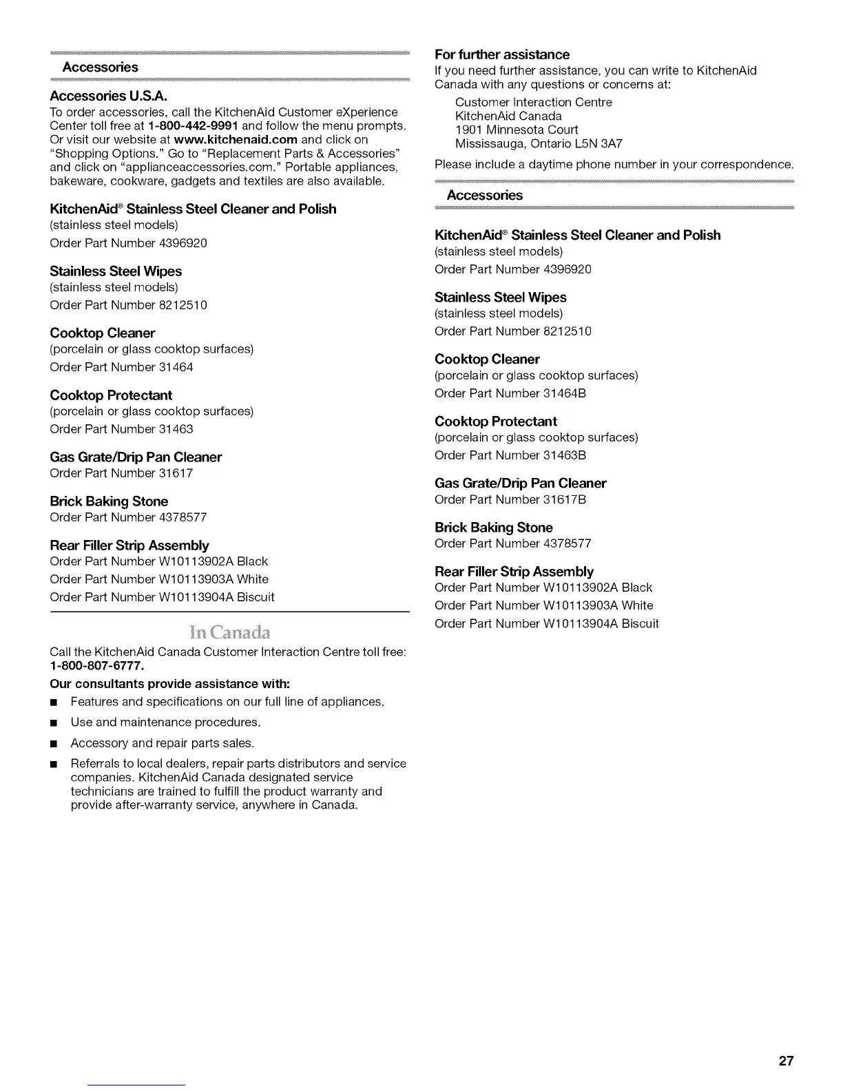Call the KitchenAid Canada Customer Interaction Centre toll free: