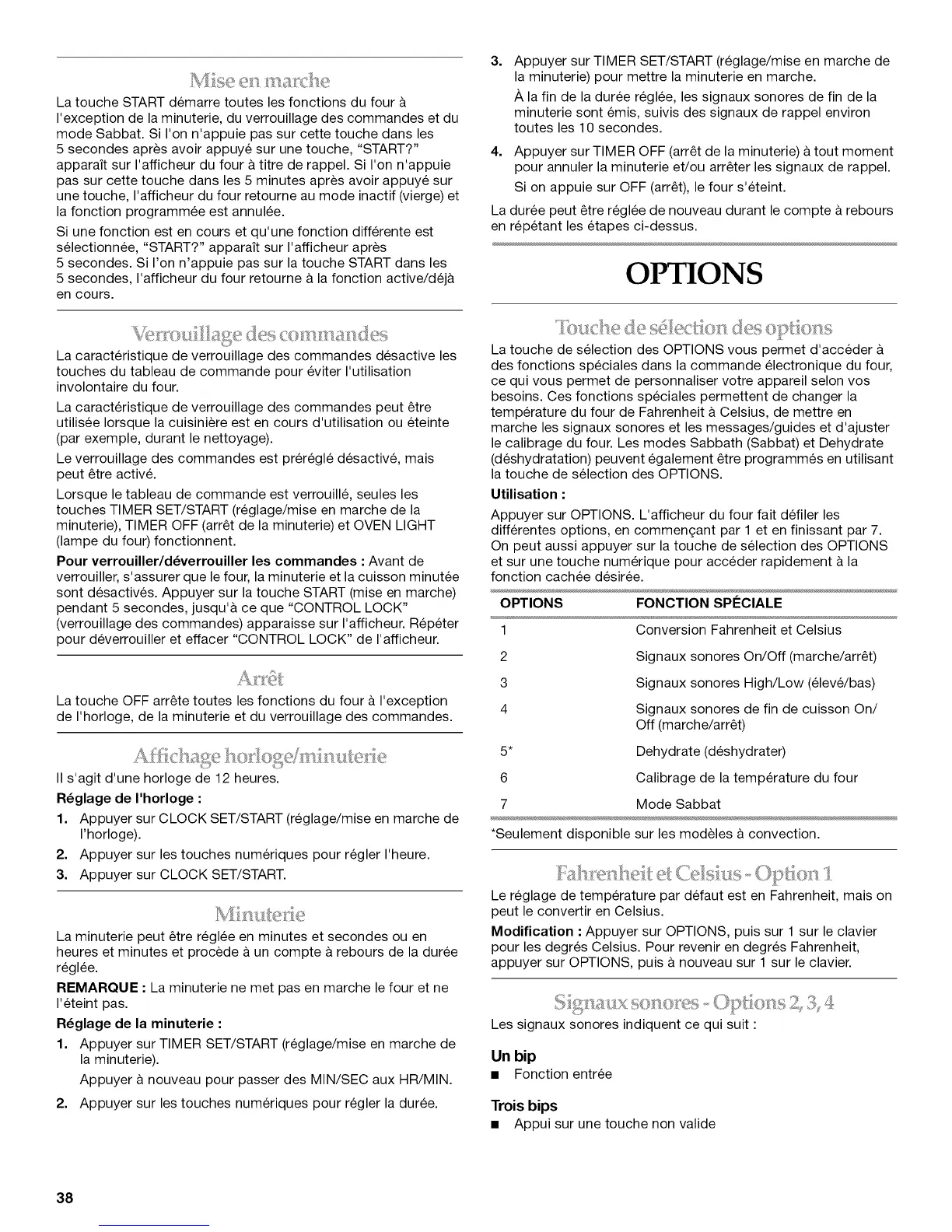 Appuyer sur OPTIONS. L'afficheur du four fait defiler les