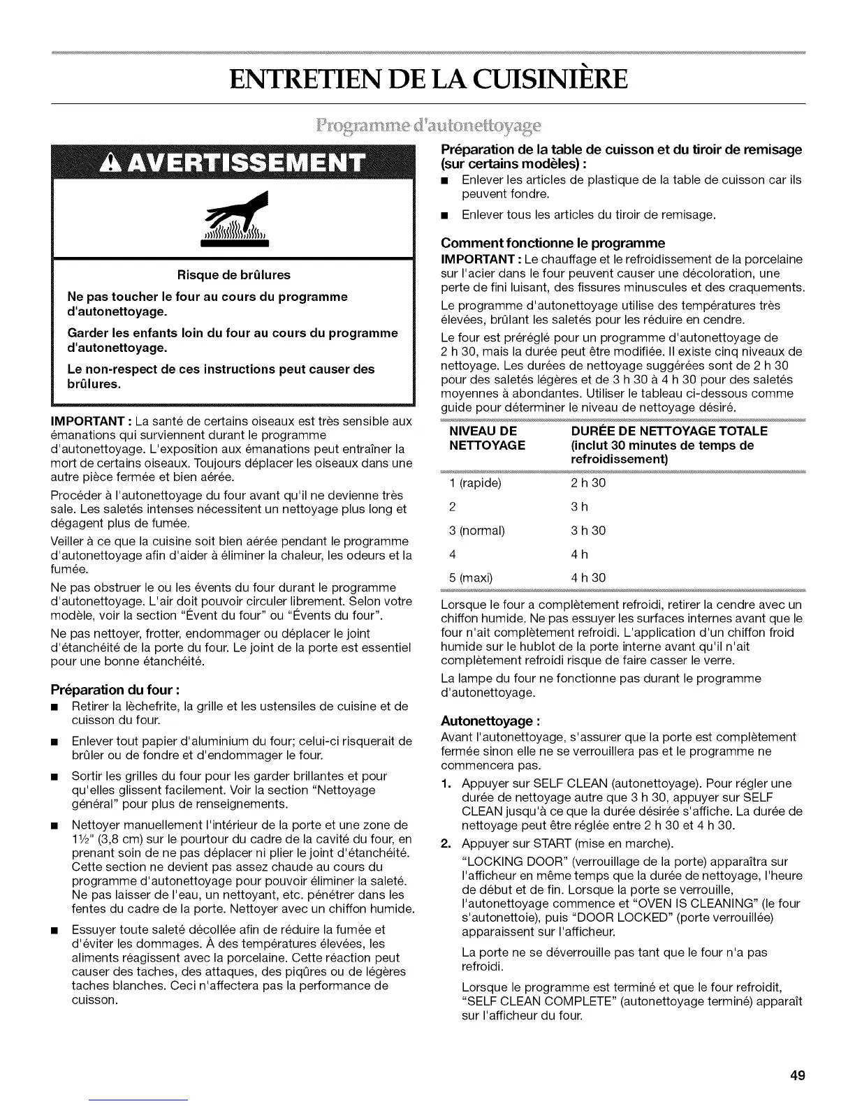 programme d'autonettoyage pour pouvoir eliminer la salet&